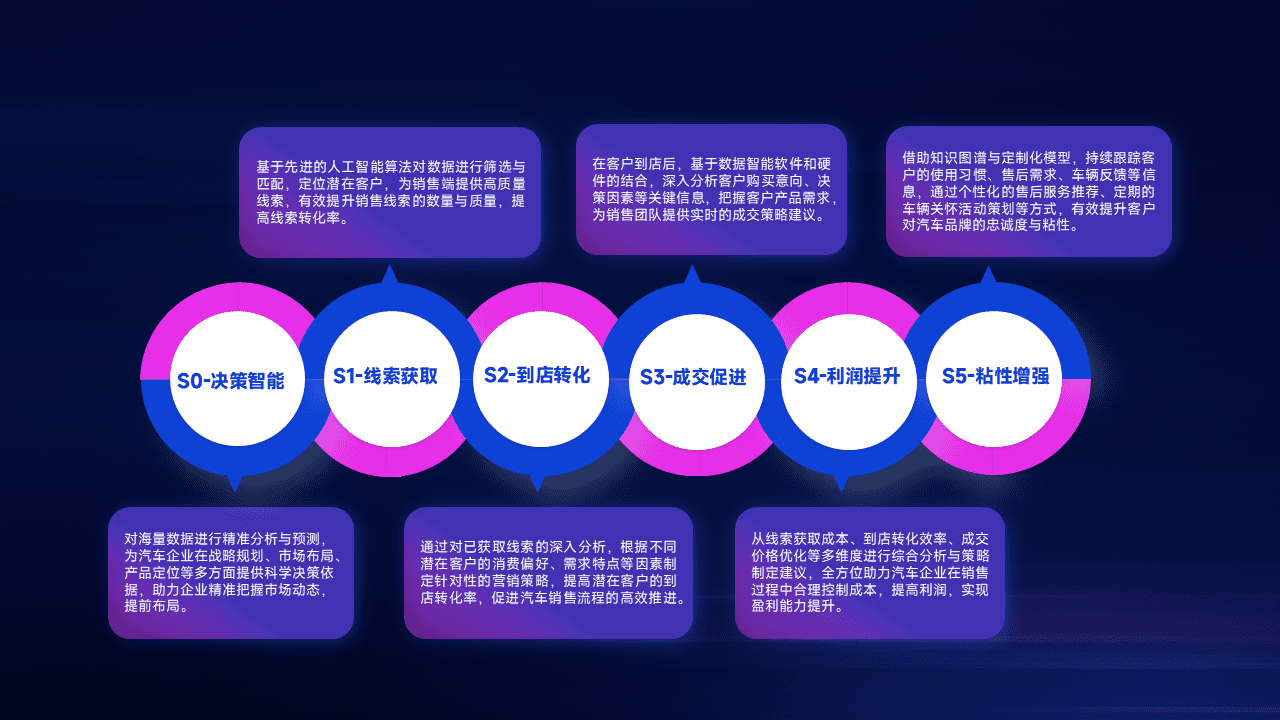 通过拓宽潜在客户来源、、、、优化线索分配并提高到店转化率,,,,以增强销售效率。。。同时,,,利用线索数据不断优化分析模型,,,有效提升转化率,,,扩大营销影响力。。。。